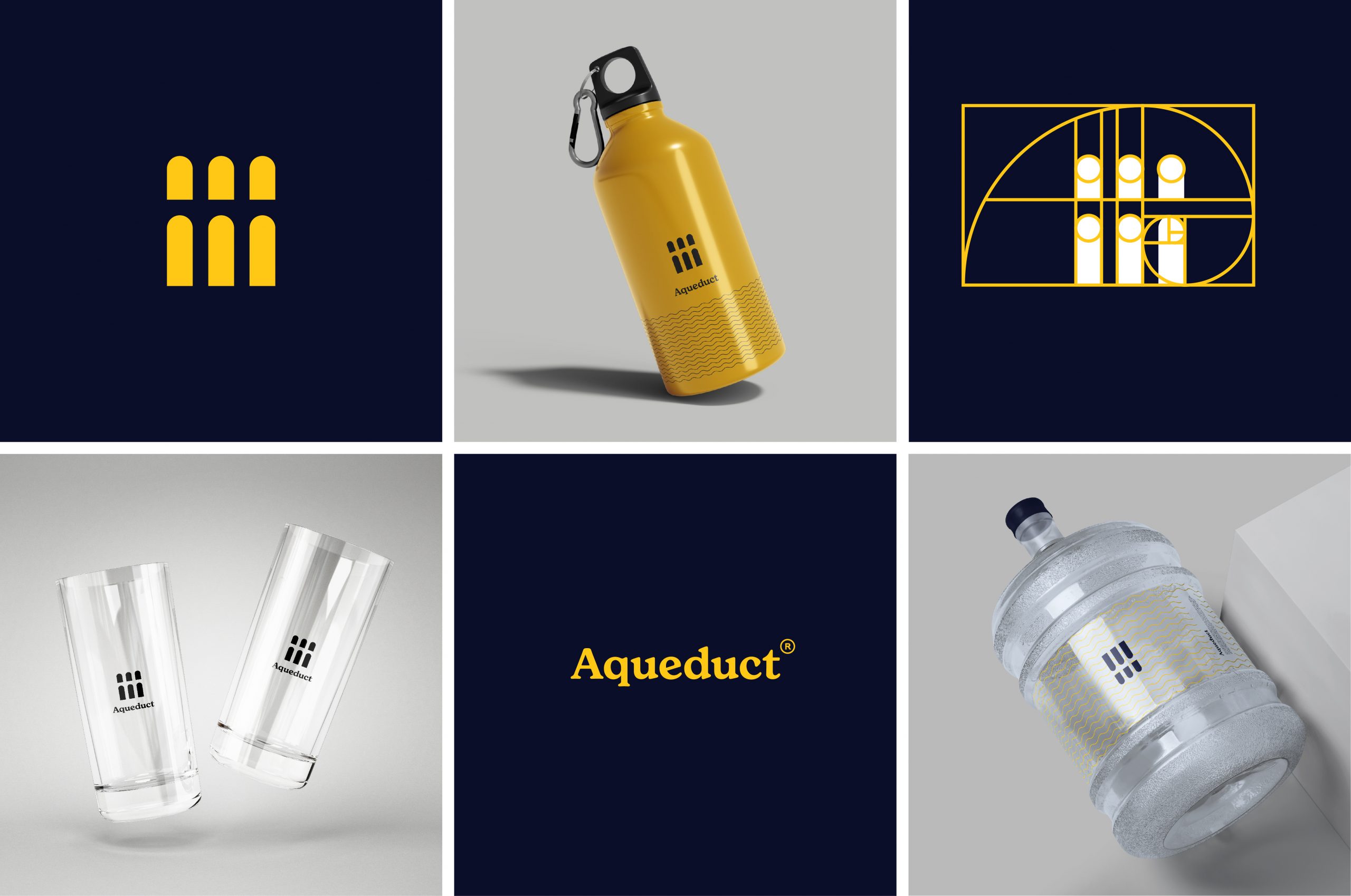 Aqueduct is a gravity-fed water delivery system that allows a large volume of potable drinking water to be conveniently transported, stored, and dispensed, within a relatively small footprint. Not only is it important for all of humanity to have clean drinking water, but we must also place equal value on the importance of convenience, and availability, of drinking water. The logo was designed having in mind the negative space between the aqueducts pillars. Like water, a logo is an essential part of every business as long as it’s clean.